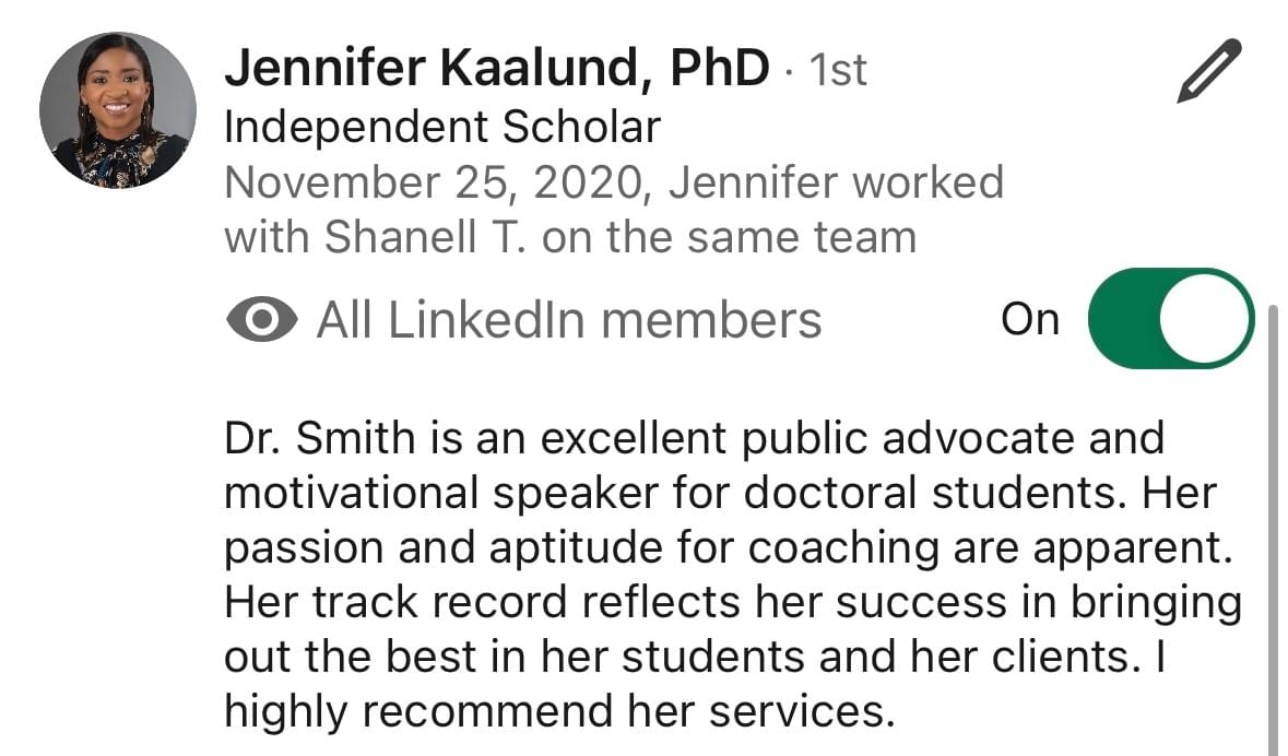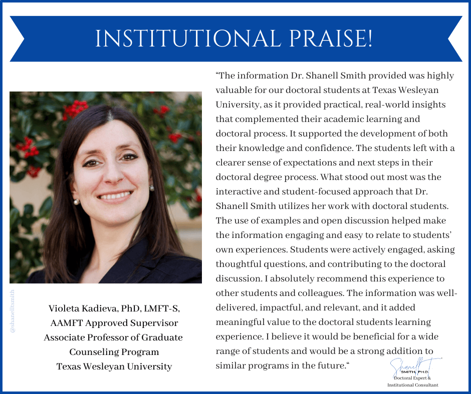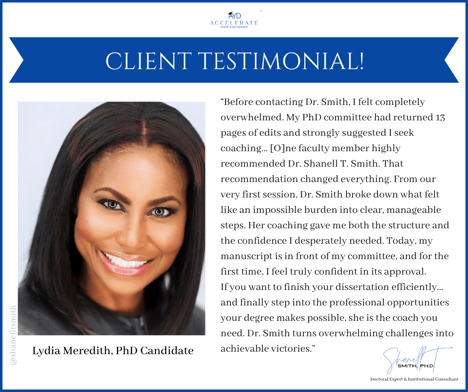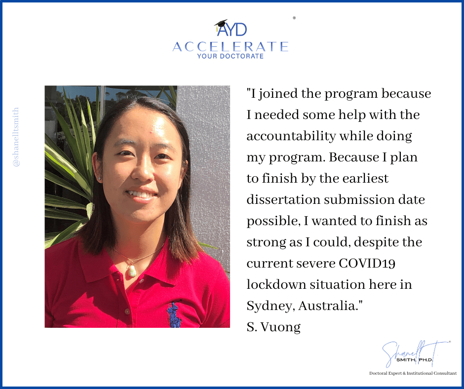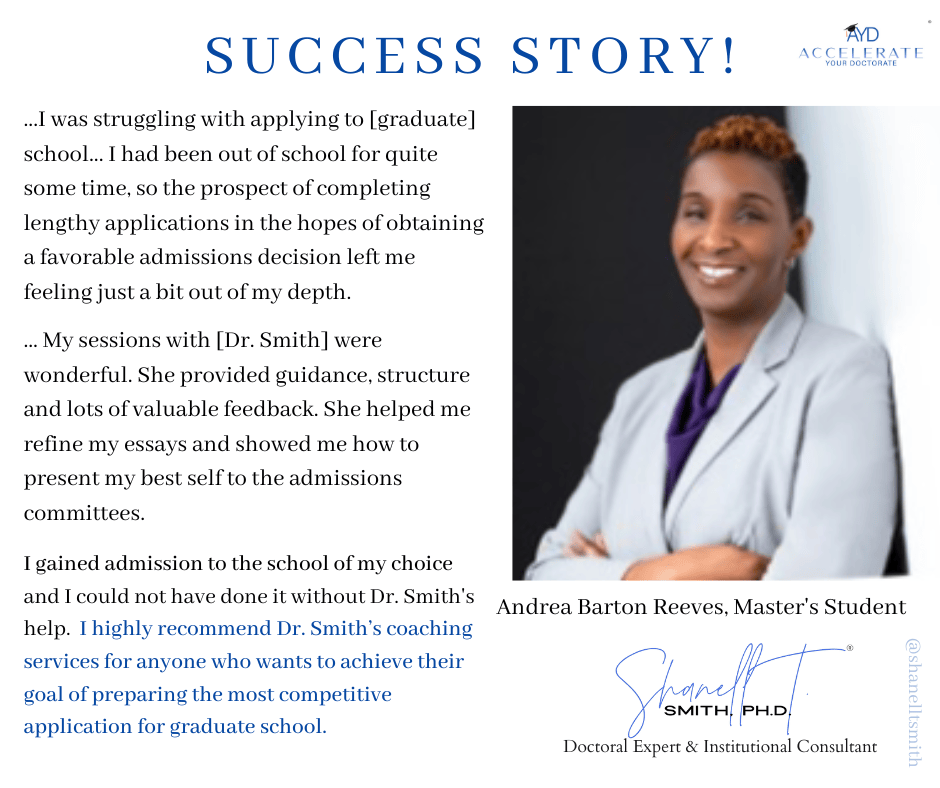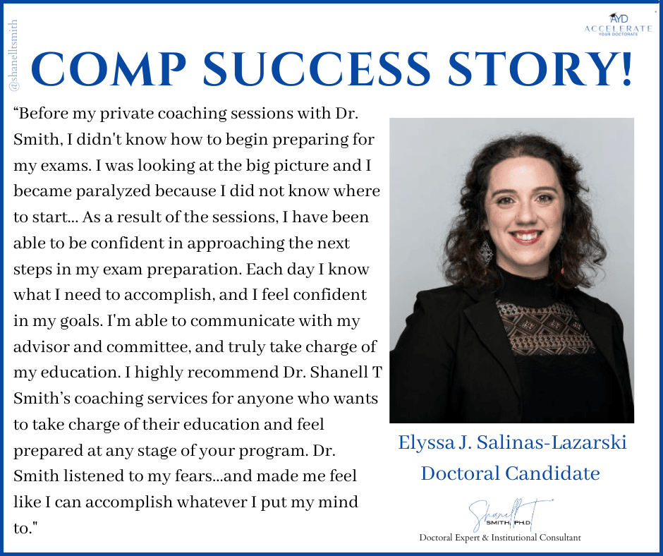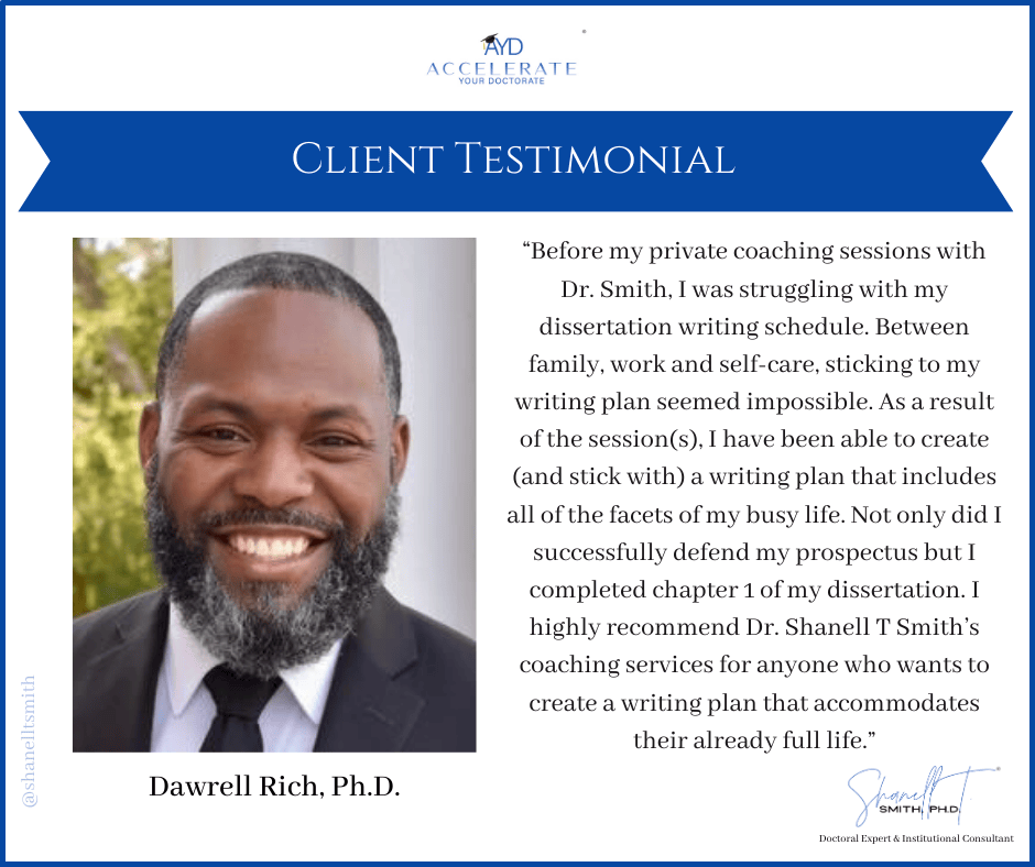 For this reason, I created my proven Accelerate Your Doctorate® Method. Through private and group coaching programs, I help doctoral students from start to FINISH.